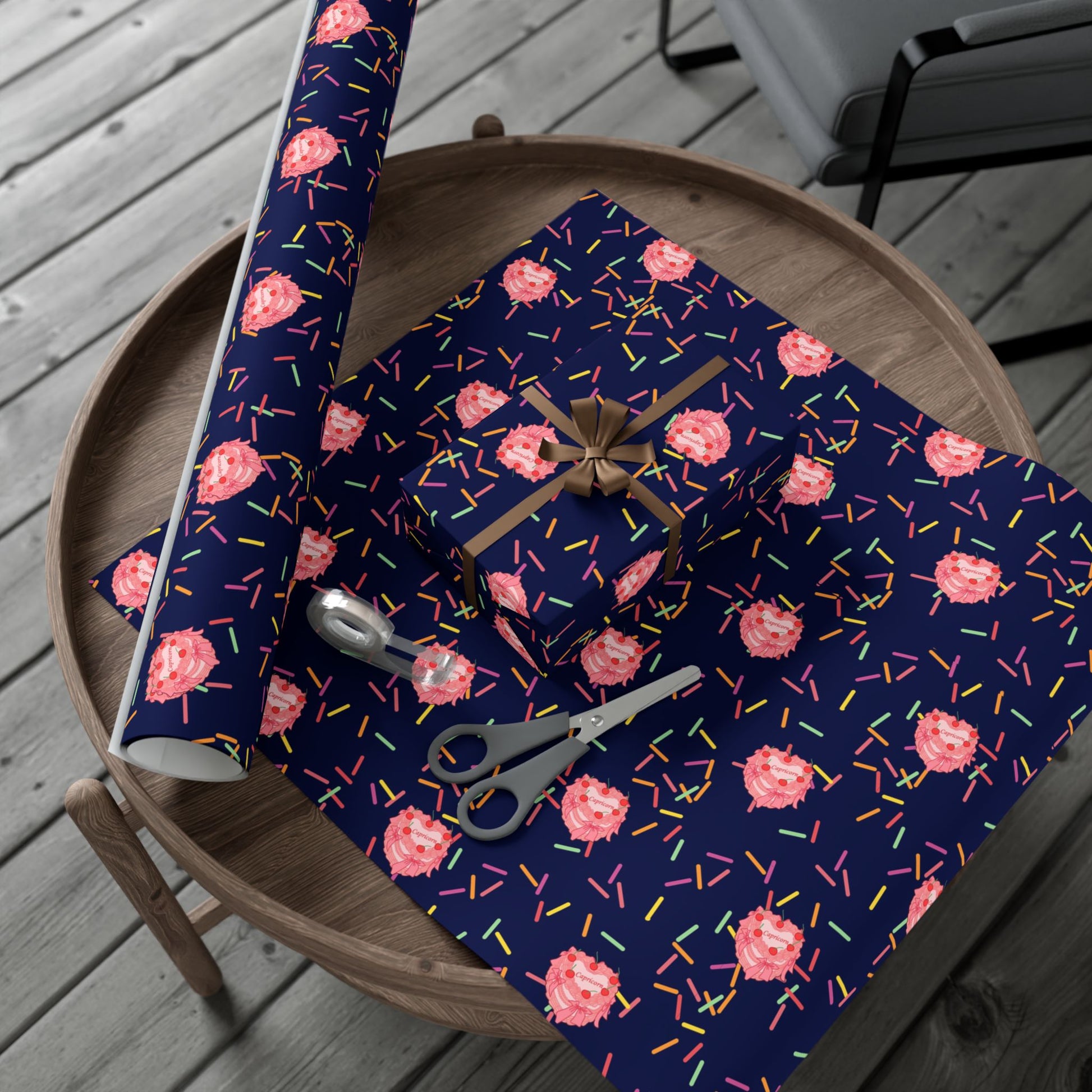 For gifts that deserve a MOMENT! Deep navy wrapping sheets patterned with playful pink florals and confetti-like sprinkles for the luxury zodiac gift wrapping experience. The rich colorway reads modern and joyful — a quiet navy backdrop that lets the rosy blooms pop. Use the satin finish for a gentle sheen that catches light on wrapped boxes, or choose matte for a refined, tactile look. These durable, water- and scratch-resistant sheets hold crisp folds and stay smooth through handling, so bows and tags sit neatly without tearing. Printed with water-based, Greenguard-certified inks, the paper feels polished while staying eco-conscious and fully recyclable. Wrap up birthdays, baby showers, and cozy holidays with a design that feels handcrafted and thoughtfully made.